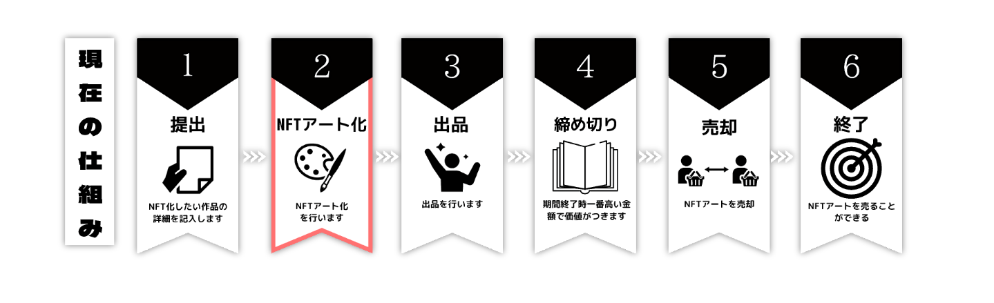 現在NFTアートの売買は以下の手順で行われています。